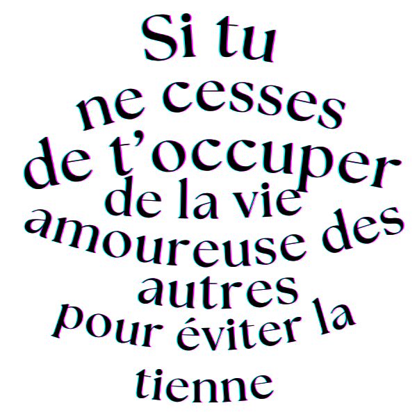 | Lis-moi | Si tu ne cesses de t'occuper de la vie amoureuses des autres pour éviter la tienne |